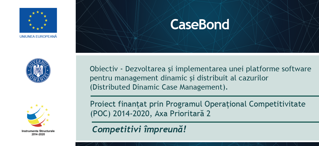 31 iulie 2017 – SC PHOENIX IT SRL, cu sediul în Mun. Brașov, Str. Col. Ion Buzoianu, nr. 20A, judeţ Brașov, punct de lucru: Târgoviște, Str. Cooperației, nr. 13, corp C1, județ Dâmbovița, anunţă deschiderea oficială a proiectului “CASEBOND” (cod SMIS 2014+), finanţat prin Programul Operațional Competitivitate (POC) 2014-2020, Axa Prioritară 2 “Tehnologia Informației și Comunicației (TIC) pentru o economie digitală competitivă”, Prioritatea de Investiții 2.2. “Dezvoltarea produselor și serviciilor TIC, a comerțului electronic și a cererii de TIC”, Acțiunea 2.2.1 “Sprijinirea creșterii valorii adăugate generate de sectorul TIC și a inovării în domeniu prin dezvoltarea de clustere”, în baza contractului de finanțare nr. 19/16.06.2017, încheiat cu Ministerul Dezvoltării Regionale, Administrației Publice și Fondurilor Europene (MDRAFPE), în calitate de Autoritate de Management și Ministerul Comunicațiilor și Societății Informaționale, în calitate de Organism Intermediar. Valoarea totală a proiectului este de 4,800,782.28 lei, din care asistența financiară nerambursabilă este de 2,648,989.28 lei după cum urmează: 2,251,640.89 lei, respectiv 85% finanțare nerambursabilă din FEDR și 397,348.39 lei, respectiv 15% din bugetul național. Proiectul va fi implementat în localitatea Târgoviște, pe o perioadă de 18 luni. Scopul proiectului îl reprezintă cercetarea industrială și dezvoltarea unui serviciu software inovativ, ușor de folosit, partajat prin infrastructura de tip cloud, denumit în continuare CaseBond, prin dezvoltarea și implementarea unei platforme software pentru management dinamic și distribuit al cazurilor (Distributed Dinamic Case Management).Prin implementarea proiectului se urmărește obținerea următoarelor rezultate: